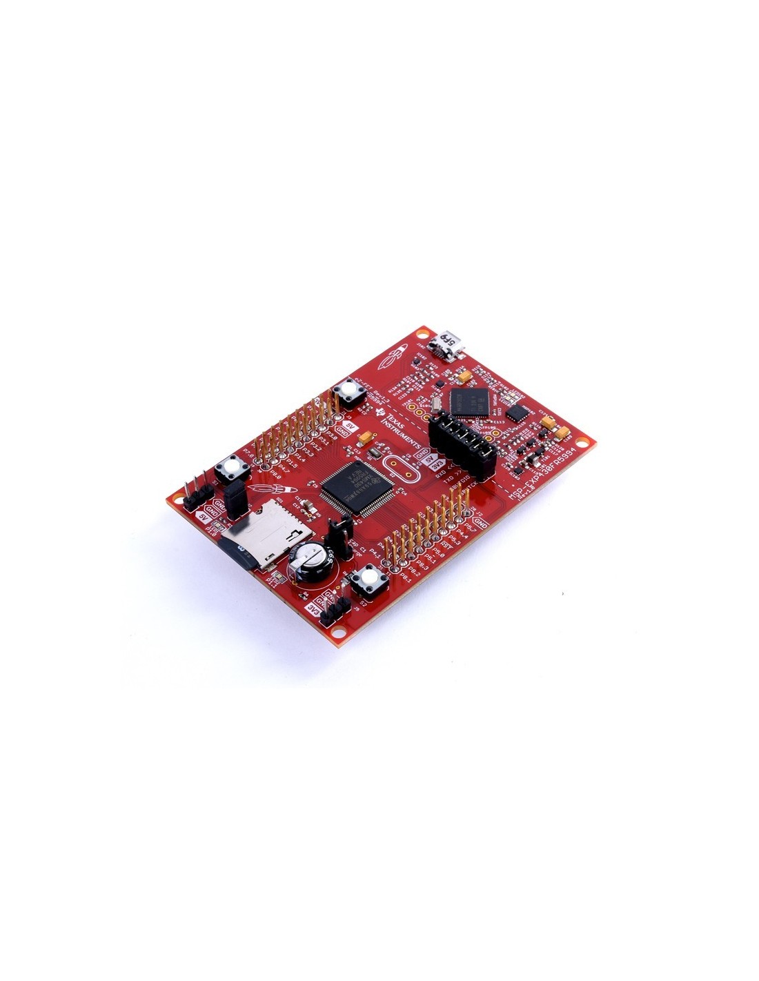 The board includes buttons and LEDs for quick integration of a simple user interface as well as two unique features: a microSD card slot allowing the user to interface with SD cards, as well as a super capacitor (super cap) that acts like a rechargeable battering, enabling standalone applications without an external power supply.