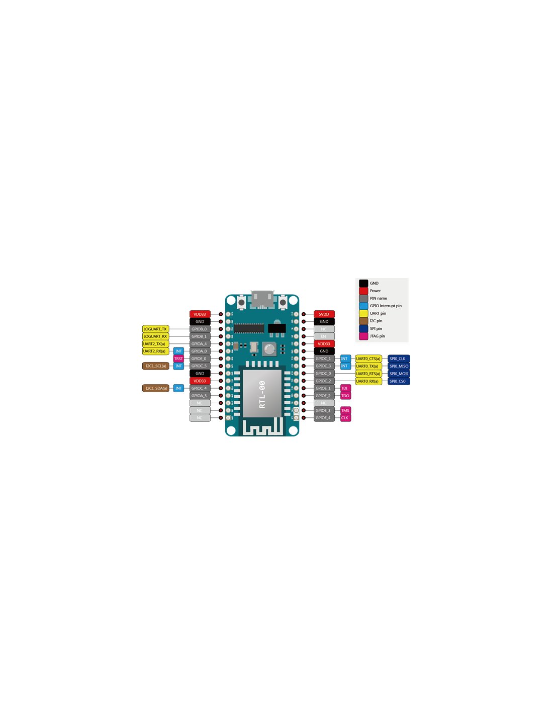 - Expansion – 2x 16-pin breadboard-friendly headers with GPIOs, UART, SPI, I2C, PWM, I2S, power signals