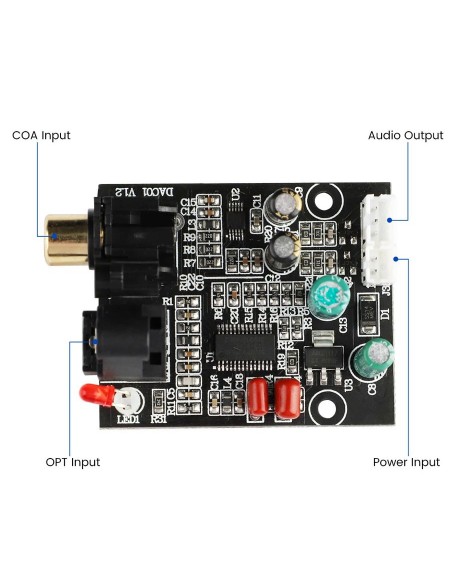 módulo DAC pode ser instalado no amplificador de potência para expandir a interface de entrada do amplificador de potência, conectar a interface de saída digital do PC ou TV com fibra óptica ou coaxial. A transmissão do sinal digital pode efetivamente reduzir o ruído de interferência e melhorar a qualidade do som.