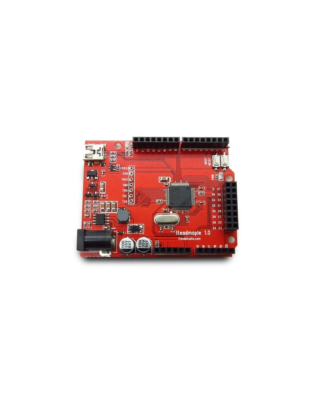 Iteadmaple is a microcontroller board based on Leaf Maple. The Iteadmaple can achieve the maximum 72 MHz, it has 39 digital input/output pins, 16 analog inputs, native full speed USB, 3 USARTs (hardware serial ports), integrated SPI/I2C support, with power jack, and reset button. Iteadmaple is programmable over USB via a provided DFU bootloader, no extra hardware required! Users can also program the onboard program flash via external X-link/X-linkEx JTAG interface. Iteadmaple offers security support for read/write protected addresses, as well as User and Handler processor modes.Iteadmaple can be powered by USB or external power supply.