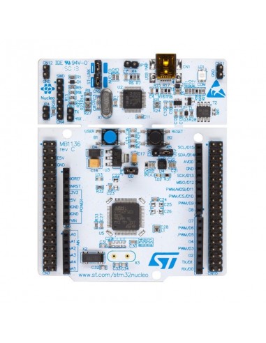 The ARDUINO® Uno V3 connectivity support and the ST morpho headers allow the easy expansion of the functionality of the STM32 Nucleo open development platform with a wide choice of specialized shields.