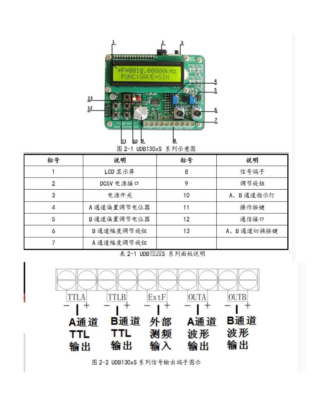 UDB-130xS series dual-channel DDS function signal generator adds a dual-channel output function based on the original UDB series signal source. It adopts direct digital synthesis (DDS) technology, FPGA design, and ultra-low power consumption; the internal circuit adopts surface The patch process greatly improves the anti-interference and service life of the instrument, meeting the needs of more users. It is an ideal testing and measuring equipment for electronic engineers, electronic laboratories, production lines, teaching, and scientific research.