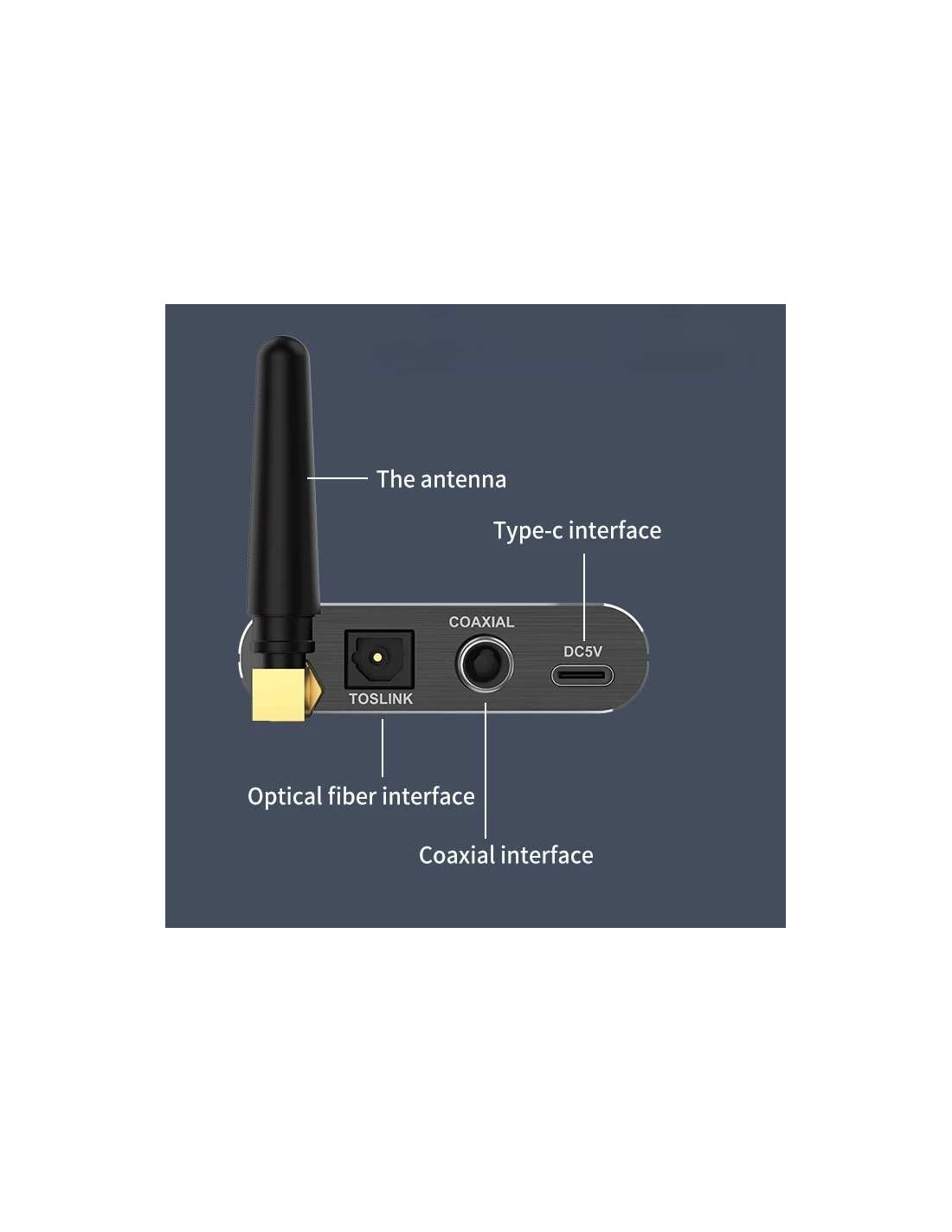 Conecte alto-falante antigo ou amplificador de potência 3.5mm AUX/Coaxial/Interface de fibra óptica e interface coaxial de fibra, Resolva o problema de o alto-falante não ter Bluetooth e não poder usar Bluetooth para jogar.