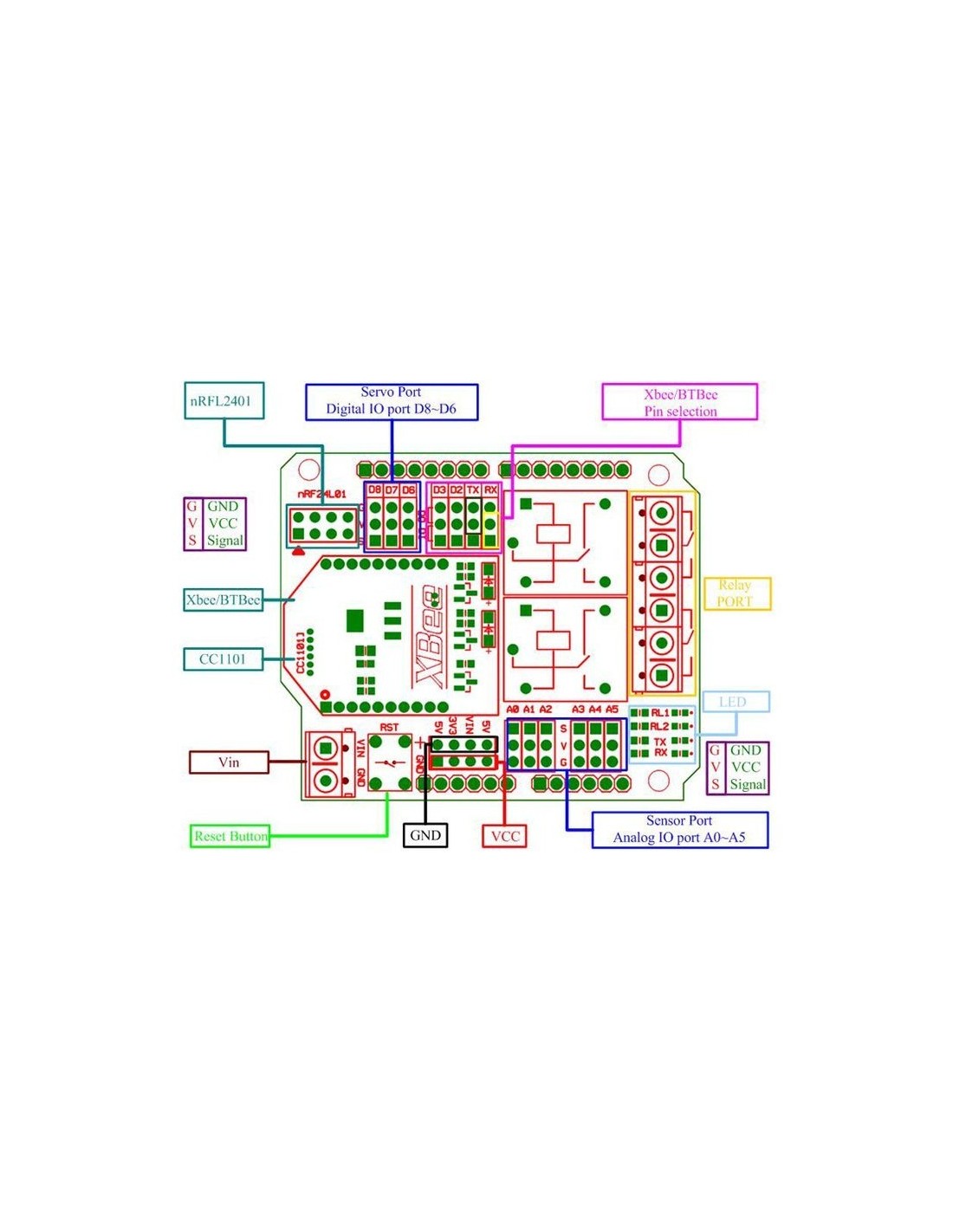- With XBBee/BTBee, CC1101 and nRF24L01 wireless interface