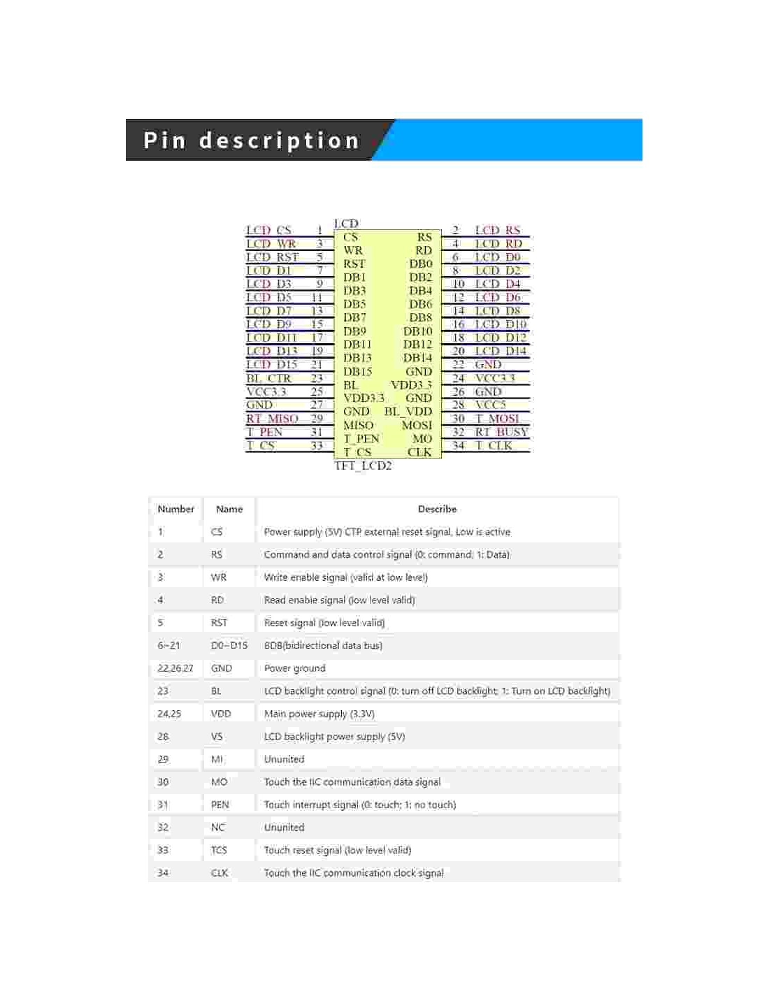 - Simple interface (LCD adopts 16-bit 8080 parallel port, touch screen adopts IIC interface)