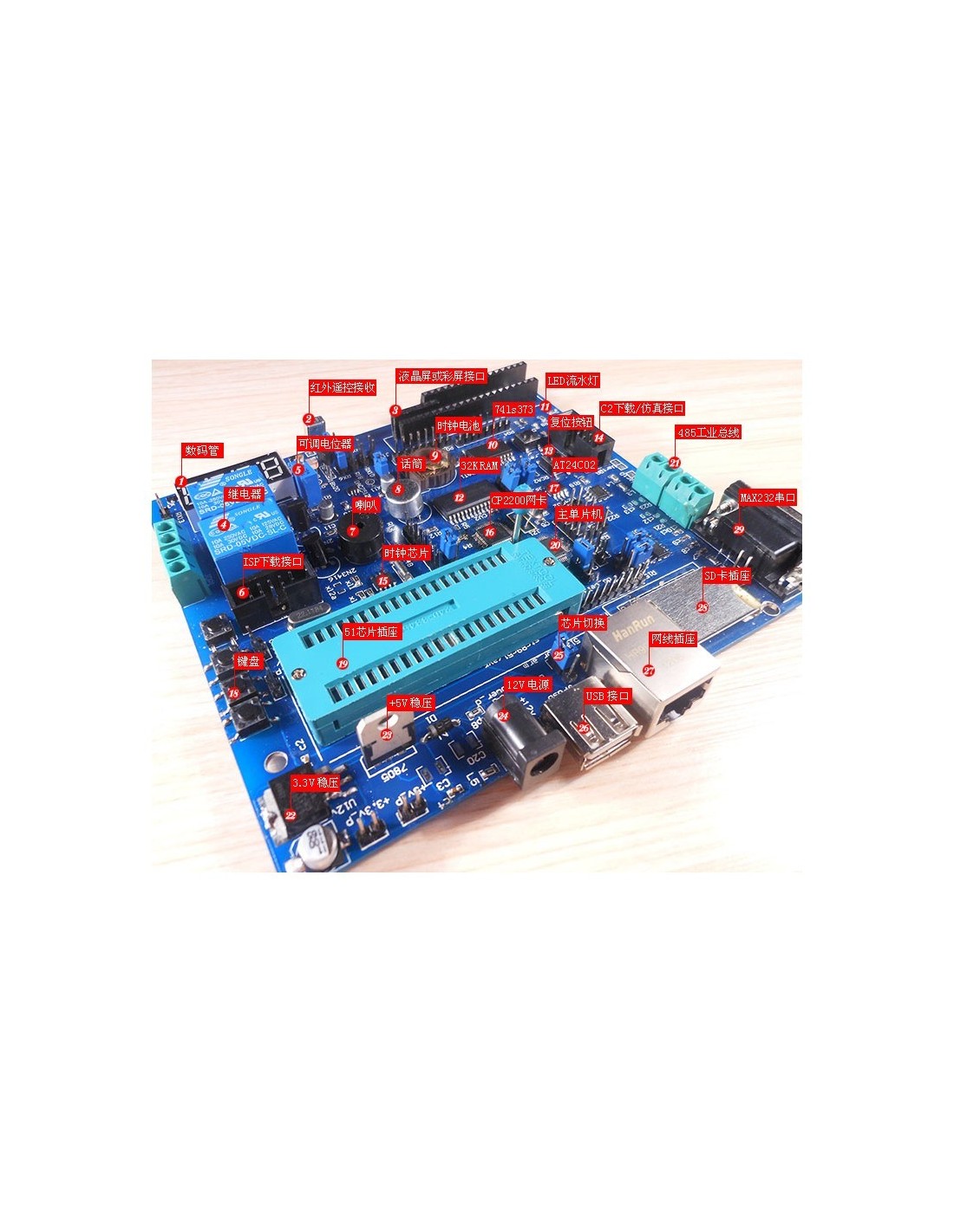 1. Features: speech recognition function, Ethernet network communication, TCP/IP, sd card file reading and writing, usb communication test, web page server, voice communication , web control relay (smart home)